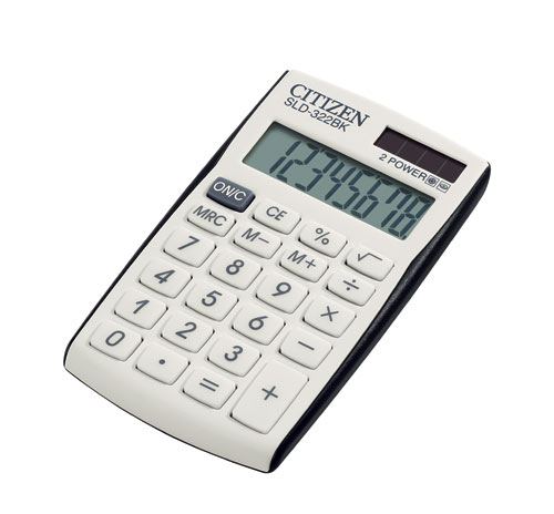CITIZEN SLD322BKKapesní kalkulačka Provedení: plast Barva: bílá/modrá Displej: 1 řádkový, 8 místný Napájení: solární/baterie Klávesy: plastové Ochranné pouzdro: ne Rozměry: 105x64x9 Váha (g). 40 |