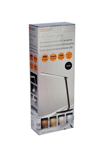 WO37-B Solight LED stolní lampička stmívatelná, 12W, volba teploty světla, USB, černý lesk